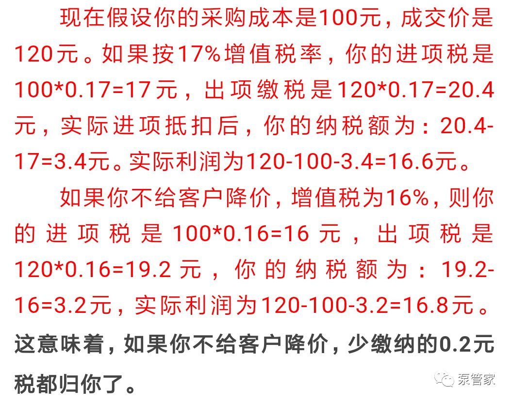 朋友们,还记得去年国家把增值税从17%降到16%,众多朋友反应它们的客户借机要求降价1%,从感觉上来说,似乎给客户下降1%是合理的,但从直觉上又觉得简单降价1%不太对。感觉不对,有点乱,得捋一捋。
