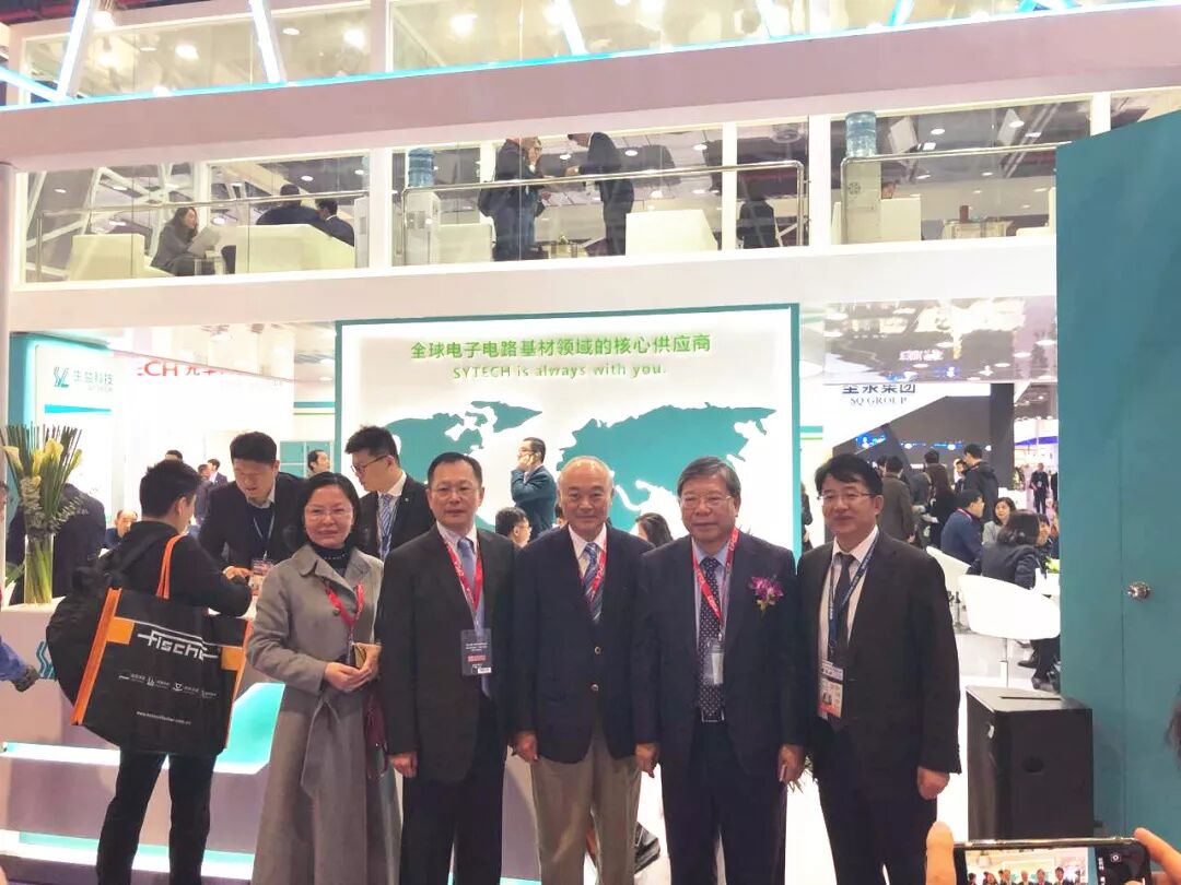 展览会首日,广东生益董事长刘述峰、总经理陈仁喜、副总经理董晓军、集团营销中心总裁曾红慧、董事会秘书唐芙云,陕西生益总经理杨徽,苏州生益总经理焦锋等公司领导亲临现场,集团公司相关营销、技术人员参加展会。